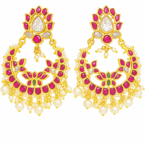 With a perfect blend of traditional elegance and modern flair, these earrings are ideal for weddings, festive occasions, or statement wear. Lightweight yet opulent, they bring sophistication to any ensemble.